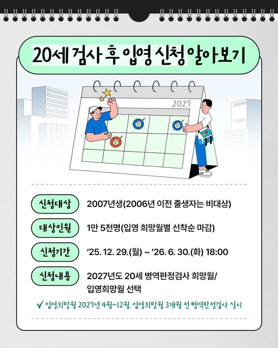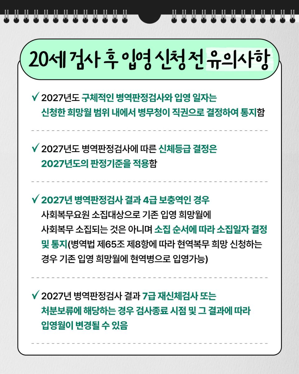 | 제목 | "20세 검사 후 입영 신청" 본인선택 실시 안내 |