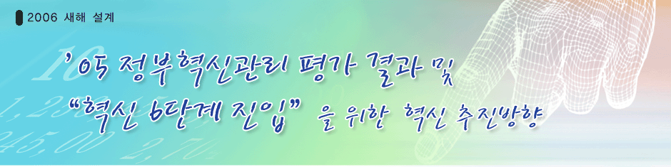 ´Ü±âÀûÀÌ°í Æò°¡¸¦ ¿°µÎ¿¡ µÐ ¼º°ú°ü¸®¿¡ ÁýÂøÇϱ⺸´Ù´Â Å« Ʋ ¼Ó¿¡¼ Á¤È®ÇÑ ¹æÇ⼺À» °®°í ¹Ì·¡¸¦ ³»´Ùº¸´Â ½Ã½ºÅÛÈ µÈ Çõ½ÅÀ» ÃßÁøÇϱâ À§ÇØ Áö³ÇØ Çõ½ÅÆò°¡¸¦ ÅëÇØ ³ªÅ¸³ ¿ì¸®Ã» Çõ½ÅÃßÁøÀÇ ¹®Á¦Á¡°ú ¼º°ú¸¦ »ìÆìº¸°í, 2006³â Çõ½Å ÃßÁøÀü·«À» ¸ð»öÇØ º¸°íÀÚ ÇÑ´Ù.