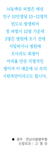 ÀÌ¿Í °°ÀÌ ³úµ¿¸Æ·ù°¡ ÆÄ¿µÈ °æ¿ì Ä¡¸íÀûÀ̱⠶§¹®¿¡ ¿¹¹æ ¹× ÆÄ¿ µÇ±â Àü¿¡ Á¶±â Ä¡·á°¡ ¸Å¿ì Áß¿äÇÕ´Ï´Ù.