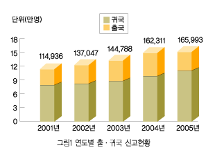 À̸®ÇÏ¿© 2006³â 3¿ù ÇöÀç ¿ì¸® »ç¹«¼Ò¿¡¼ ¹ß»ýµÈ Ãâ±¹ ±ÝÁöÀÚ´Â °Ü¿ì 3¸í¿¡ ±×Ä¡°Ô µÇ¾ú°í, 2005³â ÀÌÈÄ ÇöÀç±îÁö º´¹«½Å°í»ç¹«¼Ò¿¡¼ Çã°¡¸¦ Á÷Á¢ ¹Þ°í Ãâ±¹ÇÑ ÀοøÀÌ 894¸í¿¡ À̸£°Ô µÇ¾ú´Ù. °á±¹ ¸Å³â ¿ì¸®¿Í ºÎµúÃÆ´ø Ãâ±¹±ÝÁöÀÚÀÇ ¼ýÀÚ´Â ÇÑÇØµÎÇØ °¨¼ÒÃß¼¼¸¦ º¸¿´°í, Àç¿Ü±¹¹Î2¼¼ È®ÀÎ ¹Þ´Â ±³Æ÷µéÀÇ ¼ö¿ä°¡ ´Ã¸é¼ È®¿¬È÷ ÀçÀϱ³Æ÷ÀÇ ½Å°íÀ²µµ °¨¼ÒÇÏ°Ô µÇ¾ú´Ù.