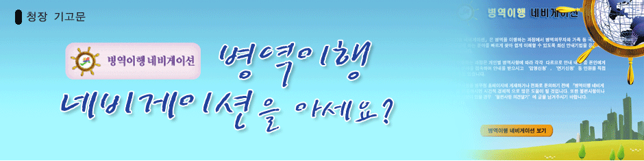 º´¿ªÀ» ¾ðÁ¦ ¾î¶»°Ô ÀÌÇàÇØ¾ß ÇÒ±î?... º´¹«Ã» ȨÆäÀÌÁö¿¡ µé¾î¿À¼Å¼ ¡ºº´¿ªÀÌÇà ³×ºñ°ÔÀ̼ǡ»À» Ç×ÇØÀÚ·Î »ï¾Æ º´¿ªÀÌÇà°ú °ü·ÃµÈ Àλý¼³°è¸¦ ÇØ º¸½Ã±â¸¦ ±ÇÇÑ´Ù.