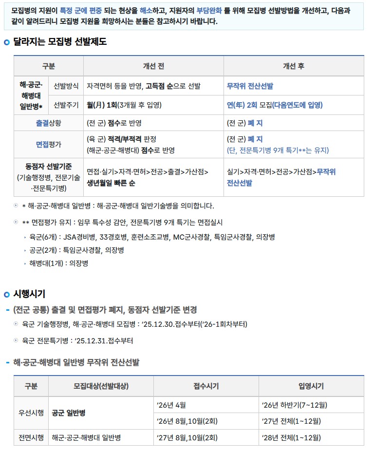 | 제목 | '26년 달라지는 모집병 선발제도 안내 |