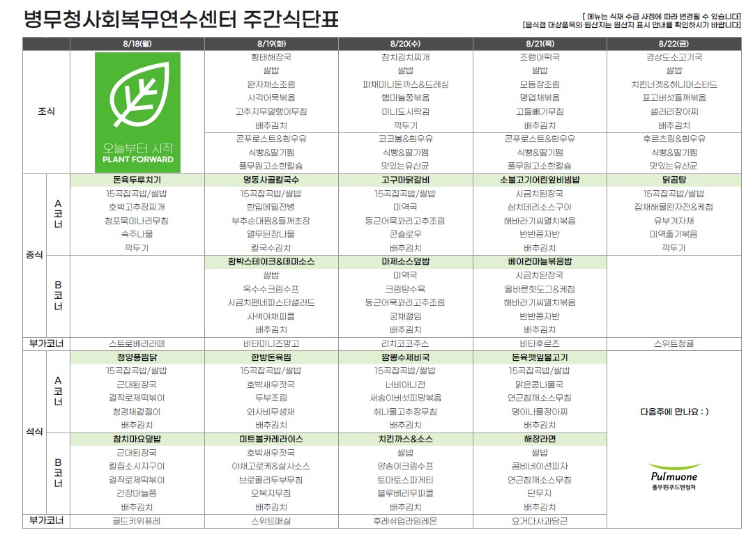 이 누리집은 대한민국 공식 전자정부 누리집입니다.| 제목 | 주간식단표(2025.8.18.~8.22.) | ||