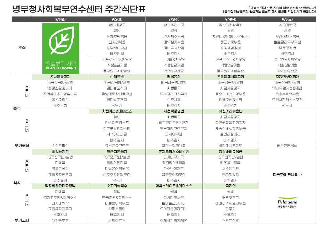 이 누리집은 대한민국 공식 전자정부 누리집입니다.| 제목 | 주간식단표(2025.9.1.~9.5.) | ||