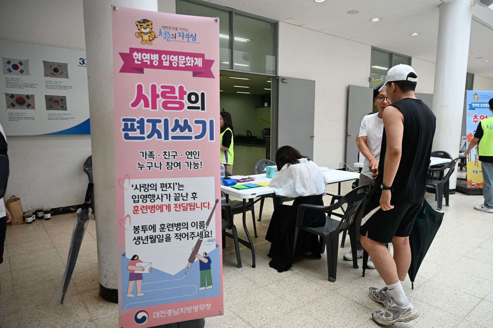 대전충남지방병무청은 7.8. 육군훈련소에서 현역병 입영문화제를 개최하였습니다. 입영장정과 가족 등 6,000여명이 참여하여 전문 MC가 진행하는 다채로운 공연, 참여 프로그램, 군악대 공연 등을 즐겼으며 입영자와 가족을 격려하고 응원하는 자리가 되었습니다. ![]() |