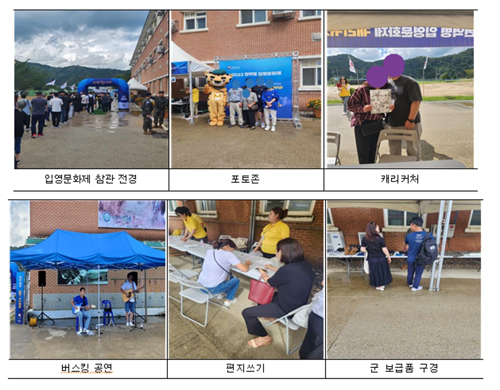강원영동병무지청은 '23.9.18. 강원도 인제군의 12사단에서 현역병 입영문화제를 개최하였습니다. 민관군이 함께 마련한 다양한 프로그램으로 입영자와 가족은 입영에 대한 긴장감을 해소하고 추억을 남길 수 있는 시간을 보냈습니다.