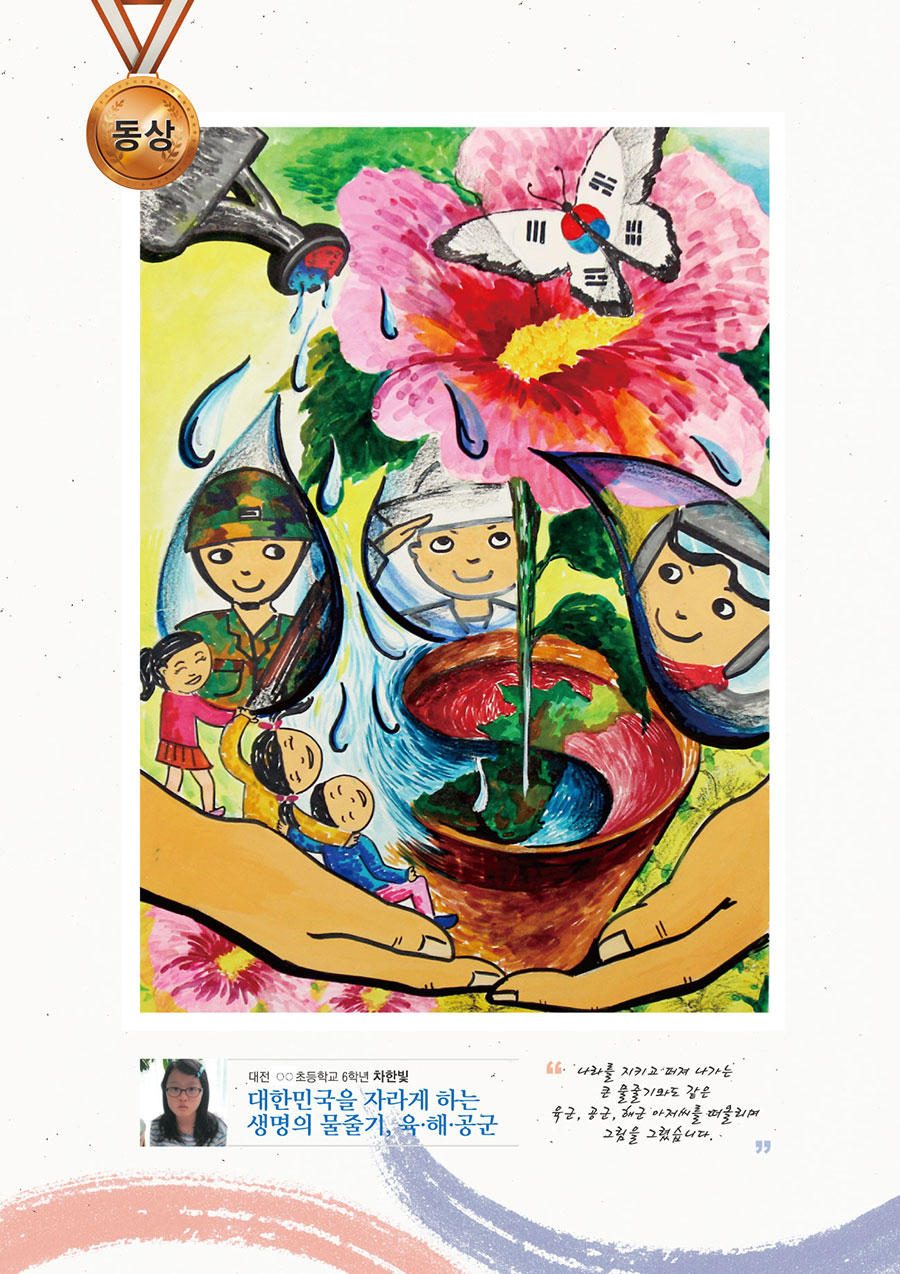 동상 대전 ○○초 6 차한빛 -대한민국을 자라게 하는 생명의 물줄기,- 육?해?공군
