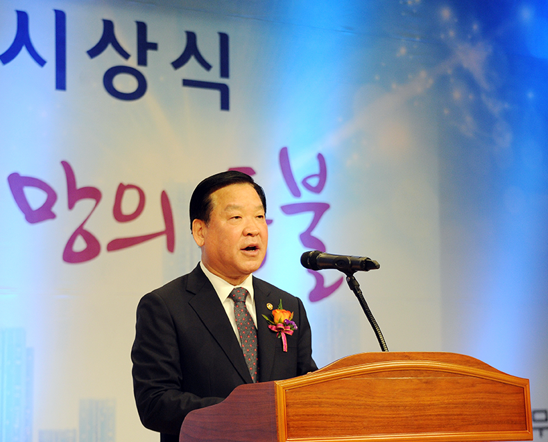 기찬수 병무청장은 충북 보은 사회복무연수센터에서 열린 제5회 사회복무대상 시상식에서 인사말을 했다. (11월 7일, 사회복무연수센터)