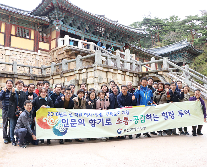 부산병무청은 ’17년 BSC 실적 우수 포상금 등을 활용하여 전 직원이 참여하는 ‘경주 힐링투어 체험’을 실시하였다. (4월 6일, 경주)