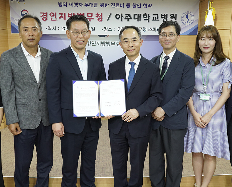 경인청은 병역명문가 우대사업 일환으로 아주대학교 병원과 이용료 할인 협약을 체결했다. (8월 22일, 경인지방병무청)