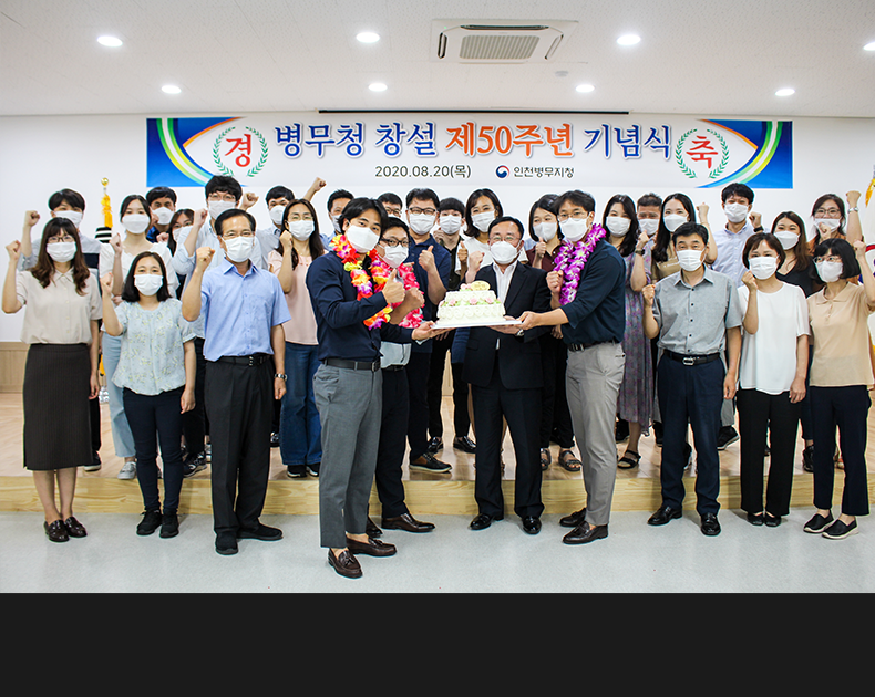 병무청장 기념사 대독, 연고지 변경자 환영 행사, 3-OUT 실천 다짐 추첨, UCC공모전 참여 직원 추첨 등 다양한 행사로 함께 축하하며 기념식을 진행하였다.(2020. 8. 20. 인천병무지청 대회의실)