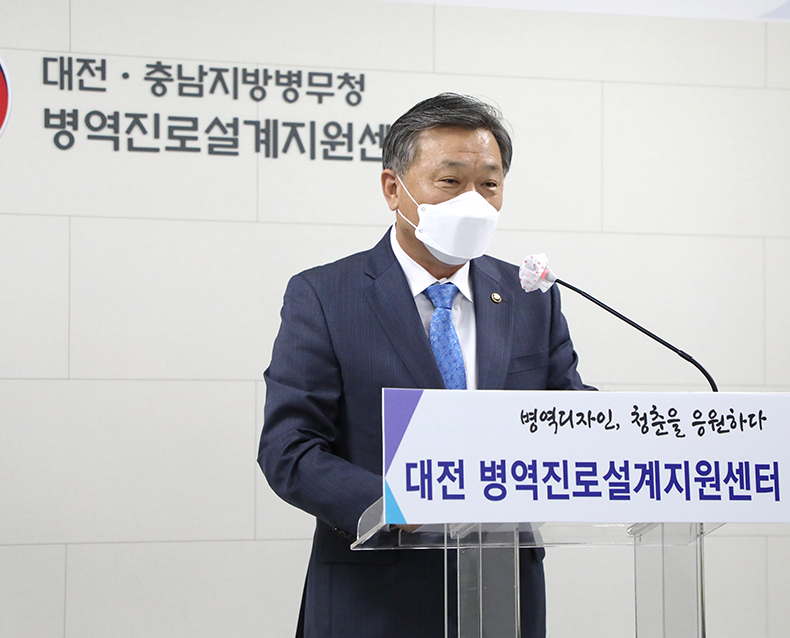 정석환 병무청장은 대전 병역진로설계지원센터 개원식에 참석해 축하를 하고 상담받는 학생을 격려했다.