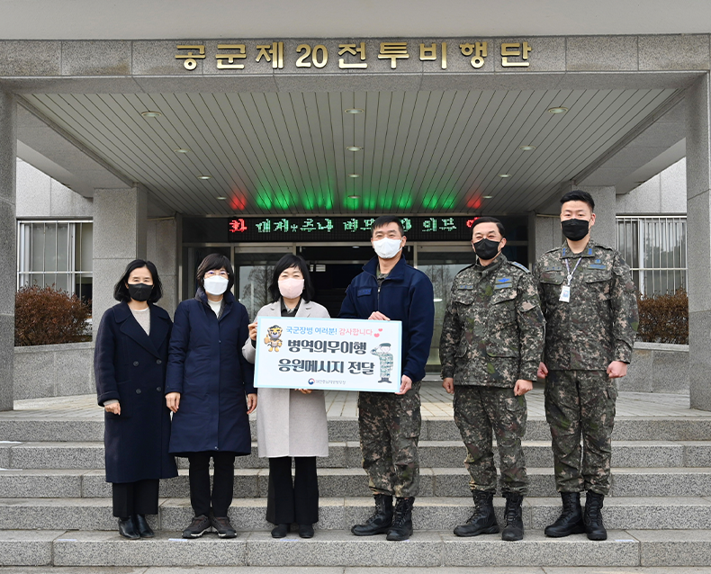 공군 제20전투비행단을 방문하여 10월 4일부터 11월 13일까지 진행한 병역의무 이행 응원메시지와 위문품을 전달했다.