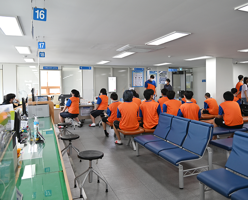 코로나19 실내 방역 수칙을 준수하여 강원영서지역 상반기 병역판정검사를 검사를 실시했다. (5월 4일, 병역판정검사장)