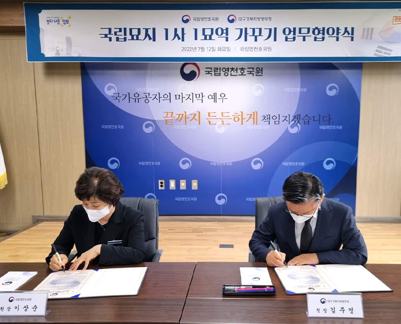 국가유공자의 공헌과 위훈을 기리고 애국심 함양을 위해 국립영천호국원과 ‘1사 1묘역 가꾸기’ 협약을 체결했다.