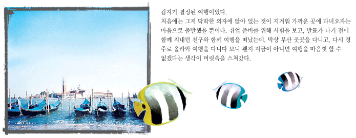 ¸·»ó µÑ¸¸ ÀϹݼ®¿¡ ŸÀÚ´Ï ºÒ¾ÈÇß´ø Âû³ª, ÀÏÇàÀÌ µû·Î ¾ø´Â µÎ ¸íÀÇ Çѱ¹ÀÎÀÌ ÀÖ¾î¼ ¿ì¸° ÇÔ²² À̵¿Çϱâ·Î ÇÏ°í ±âÂ÷¿¡ ¿Ã ¶ú´Ù. 6°³ÀÇ ÀÇÀÚ¸¦ Æì¼ ħ´ëÄó·³ ¸¸µç ÈÄ ¿©ÀÚ¸¸ 4¸íÀÌ¾î¼ ºÒ¾ÈÇß´ø ¿ì¸®´Â Å×ÀÌÇÁ·Î ¹® ÁÖº¯À» µÑ·¯¼ ºÙ¿©µÎ°í, ÀÚ¹°¼è ¿Í üÀÎÀ¸·Î °¡¹æÀ» °íÁ¤½ÃÄѵРä ÀáÀÌ µé¾ú´Ù.(¹°·Ð ÀÌ·± Å×ÀÌÇÁ¿Í üÀÎÀº ÇÔ²² ź ÀÏÇàµéÀÌ °¡Á®¿Â ¹°°ÇÀ̾ú´Ù. ¿ì¸° °¡º± °Ô ¸ö¸¸°¡Áö°í ¶°³ ¿©ÇàÀÌ´Ù.)